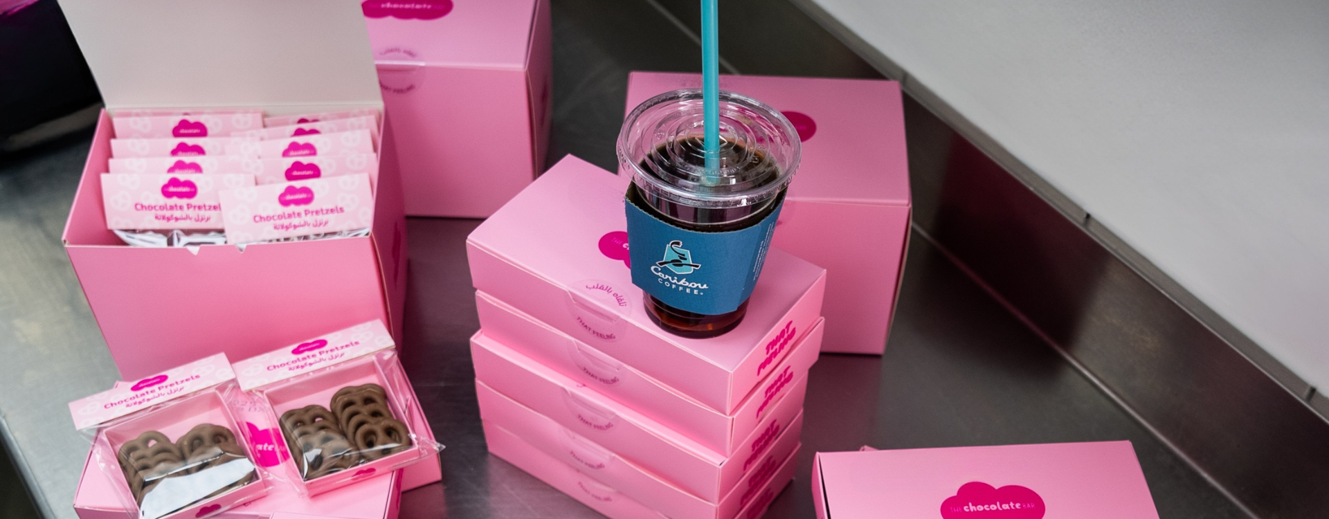Towards the end of 2025, we began working on one of our favorite projects! We developed a signature line of chocolate bars and products for Kuwait's very own Caribou Coffee. This was exciting for us not just for the reach and scope that a brand as successful as Caribou Coffee provided, but because of the love and warmth that the brand extended to its audience. This helped us align with the brand, because it also lived the values we cherish and work by: comfort, coziness, indulgence, great quality products and a place that brings us together and creates everyday moments that we enjoying existing within.